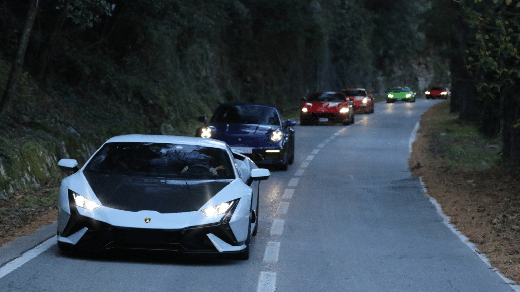 Tras el desayuno y un breve briefing, tomamos posesión de los coches escogidos para la ocasión: nada más y nada menos que catorce superdeportivos, para todos los gustos: desde un discreto BMW (M2), hasta cuatro espectaculares Lamborghinis (Huracan Performante, Huracan Evo Spyder, Huracan Tecnica y Urus Performante), pasando por cinco eficaces Porsches (992 Carrera S, 991 GT3 RS, 992 targa 4 GTS, Spyder RS Weissach y 992 GT3 4.0) y cuatro ejemplares de la marca del Cavallino Rampante (Roma Spider, F8 Spider, 296 GTB y 296 GTS)… quién da más…???