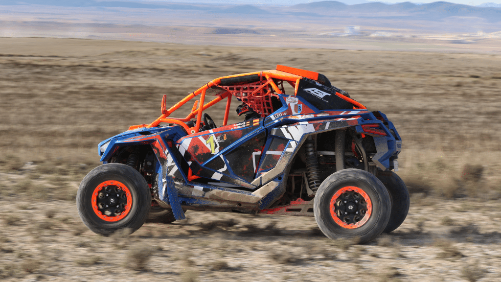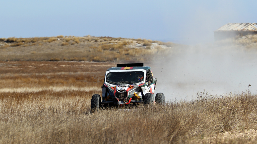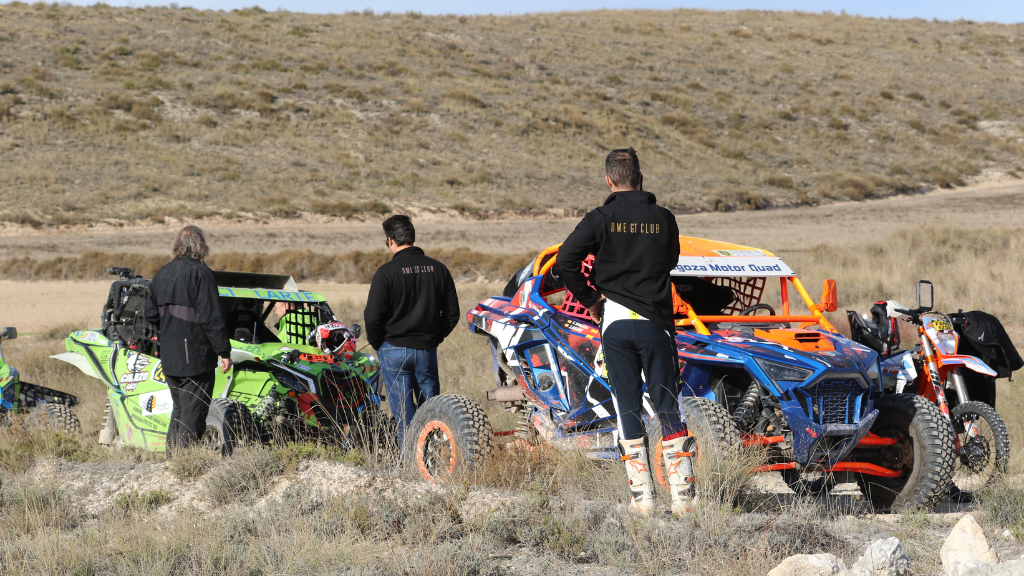 Una vez en la capital aragonesa, nos esperaba un shuttle para llevarnos a la cercana población de Fuentes de Ebro, dónde en la Finca La Dehesa nos esperaban el gran Gerard Farrés -Farreti para los amigos- y el equipo de asistencia y mantenimiento de los SxS’s encabezado por Guillermo y Rubén, con quienes ya vivimos la gran experiencia del año pasado en Teruel. En la finca nos esperaban ‘nuestros’ Can-Ams para dejarlos a punto para el día siguiente, ajustando asientos, arneses y otros pequeños detalles a la medida de cada uno.