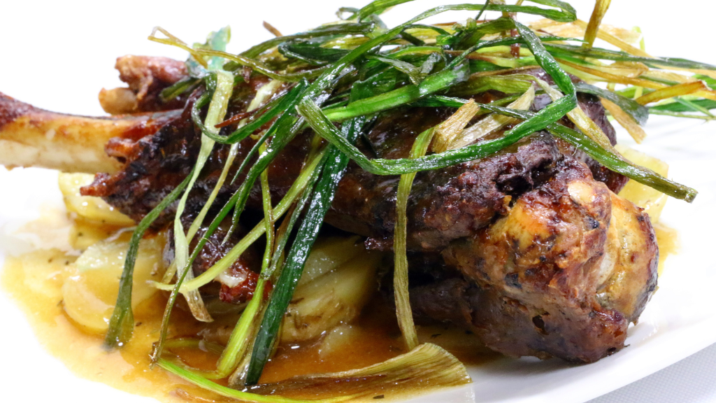 La cena, en este caso, fué en el mismo hotel dónde tras unas ensaladas a base de tomates de la tierra y bonito, nos decantamos por el ternasco, plato principal aragonés por excelencia…